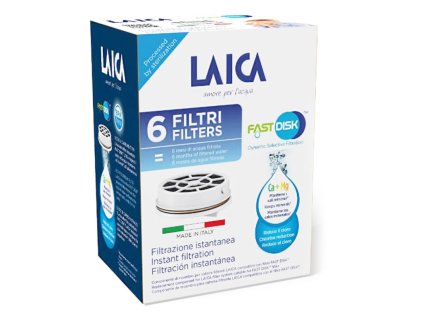 Filtračná patrónka Laica Fast Disk FD03A do karafy Flow’n Go a filtračnej fľaše MyLAICA. • Životnosť: 120 l / 4 týždne • V balení 6 kusov