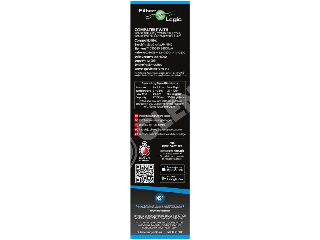 Hľadáte spoľahlivú a cenovo výhodnú náhradu originálneho filtra? Filter Logic FFL-110B je ideálne riešenie pre chladničky značiek Bosch, Siemens, Haier, Miele a mnoho ďalších. Užite si čistú, čerstvú vodu bez kompromisov.